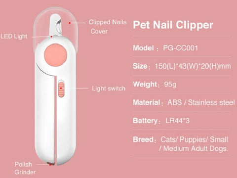 • Safety -The built-in ultra-bright LED light clearly illuminates the pet's nail bloodline, shows you exactly where to make cut to avoid damaging trimming. This innovative design can greatly reduce the risk of bleeding due to excessive trimming.